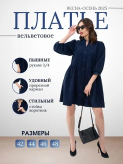 Осеннее вельветовое платье больших размеров повседневное