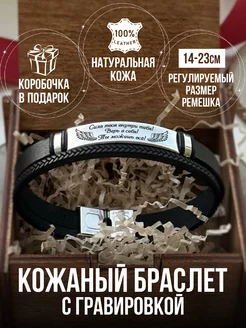 Кожаный браслет с гравировкой "Пусть твой Ангел"