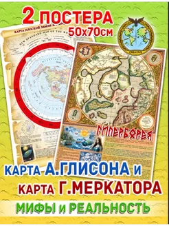 Постеры х2 шт 70х50 Карты Глиссона и Меркатора на Русском