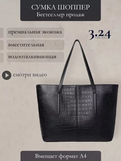 Сумка через плечо шоппер черная трапеция А4