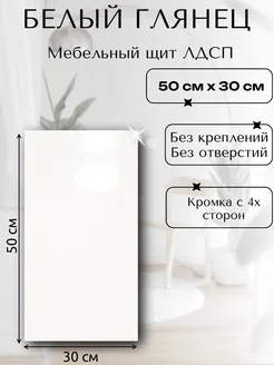 ЛДСП 50 х 30 см Белый глянец Мебельный щит (500*300) полка