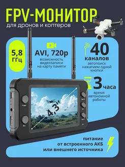 Монитор для Дрона Коптера приём видеосигнала FPV