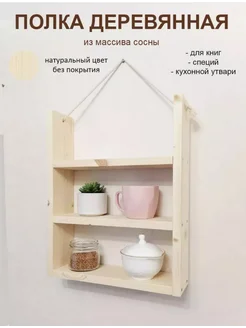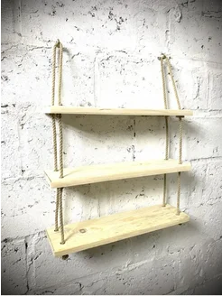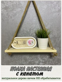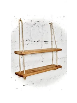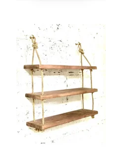 Полка настенная навесная деревянная с канатом