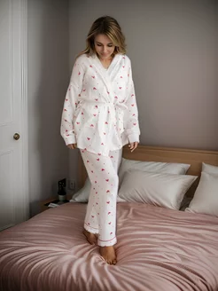 Пижама муслиновая женская тройка домашний костюм 3 в 1
