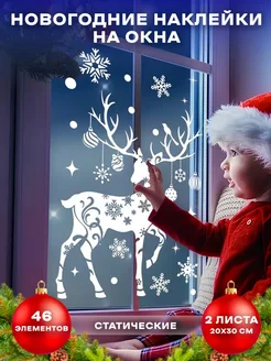 Новогодние наклейки на окна снежинки многоразовые 2025