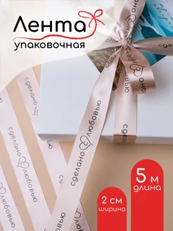 Лента атласная упаковочная с надписью Сделано с любовью 5м