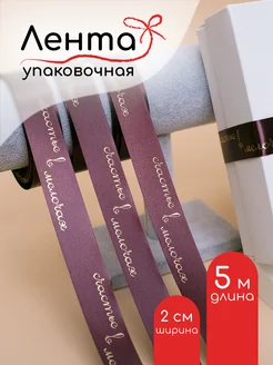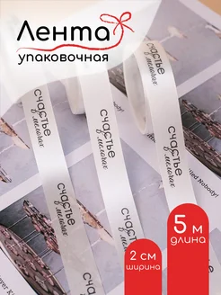 Лента атласная упаковочная с надписью Счастье в мелочах 5м