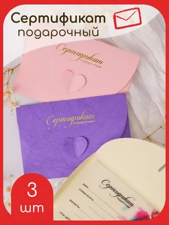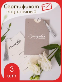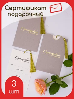Подарочный сертификат в конверте с кисточкой набор 3шт