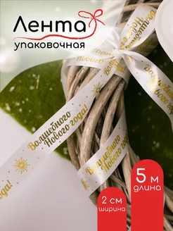 Лента атласная упаковочная с надписью "С Новым годом!" 5м
