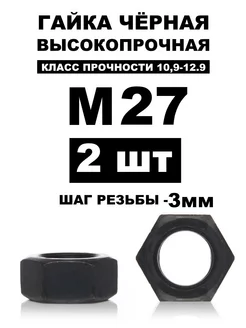 Гайка высокопрочная М27 шестигранная черная DIN 934, 2 шт