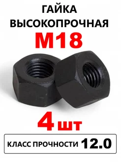 Гайка высокопрочная М18 шестигранная черная DIN 934 4 шт