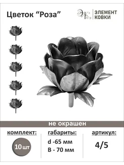 Кованый цветок роза d- 65 мм 4 5, 10 штук