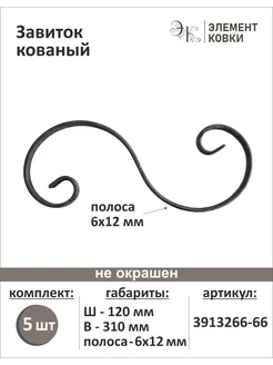 Завиток кованый 120х310мм, 5 штук