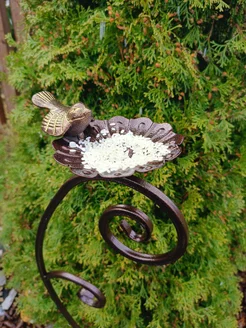Декор для сада, опора, кормушка- поилка. Воробей на цветке