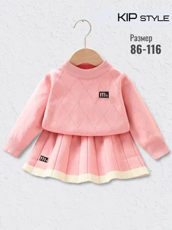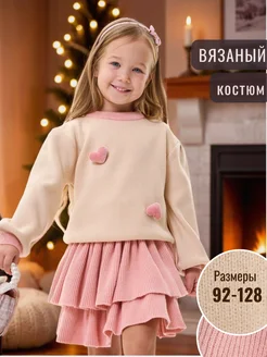 Костюм вязаный с двуярусной юбкой и свитером теплый