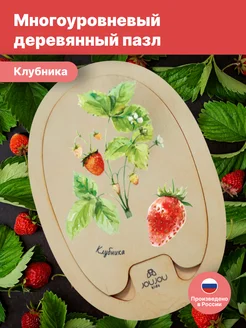 Деревянный пазл вкладыш для детей и малышей «Клубника»
