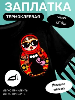 Нашивка на одежду матрешка в очках ( вышивка )