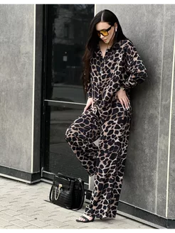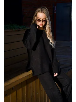 Костюм трикотажный женский двойка с брюками вязаный теплый