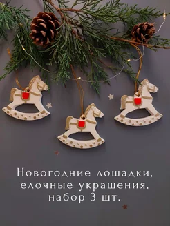 Новогодние лошадки елочные украшения, игрушки на елку набор