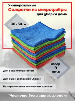 Салфетка для уборки из микрофибры 30х30 9шт