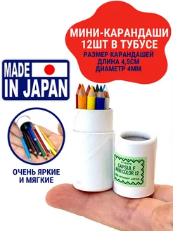 12 цветных ярких мини-карандашей в тубусе