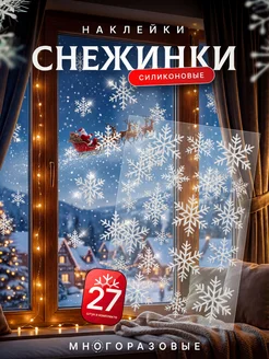 Новогодний декор и украшение наклейки снежинки на окна 27шт
