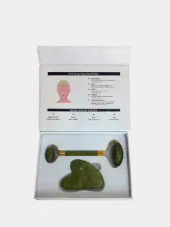 Роллер и скребок Гуаша(Нефрит)Массажер для Лица в Пенале