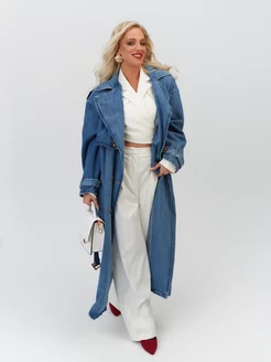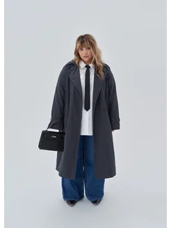 Тренч плащ длинный из экокожи оверсайз на осень 2024