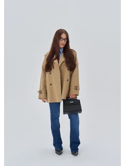 Тренч плащ короткий оверсайз бежевый весна 2025