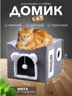 Домик-лежанка для кошек с когтеточкой и игрушкой