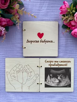 Открытка из дерева, чтобы сообщить о беременности бабушке