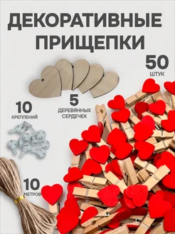 Прищепки декоративные маленькие сердечко 50 штук