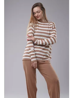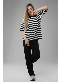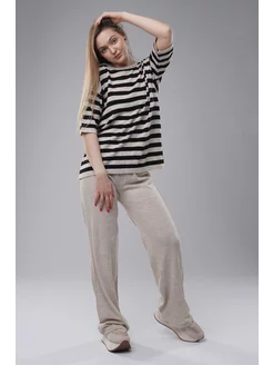 Костюм вязаный легкий костюм в полоску с коротким рукавом