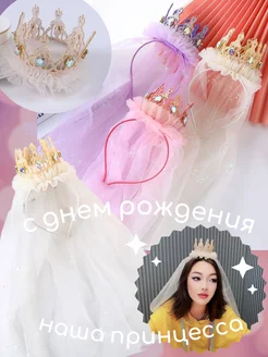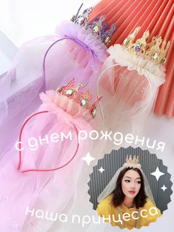 Корона принцессы с фатой на ободке