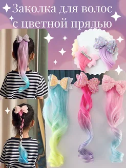 Заколка для волос бант с цветными прядями