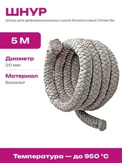 Шнур базальтовый 20мм 5м легкий монтаж, для труб и котлов