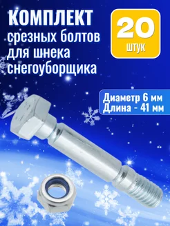 Срезные болты с гайкой для снегоуборщика 6х41 мм (20 штук)