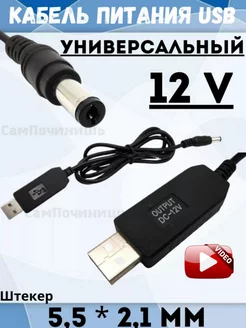 Кабель-Адаптер питания USB конвертер 12V штекер 5,5 * 2,1 мм