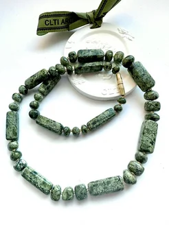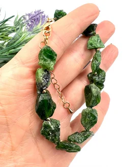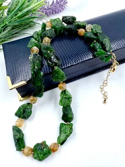 Бусы из натурального необработанного хромдиопсида и цитрина