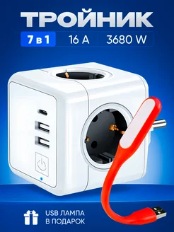 Многофункциональный Тройник 4 розетки 1 type-c 2 USB
