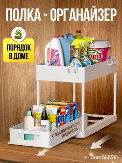 Органайзер для кухни и ванной полка двухъярусная выдвижная