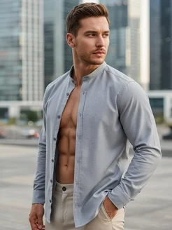 Рубашка с длинным рукавом без воротника
