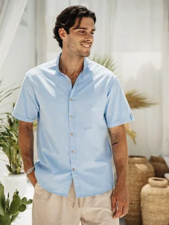 Рубашка с коротким рукавом и воротником стойкой