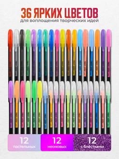 Ручки гелевые цветные с блестками 36 цветов