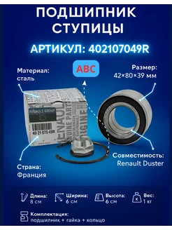 Подшипник ступицы 402107049R Renault С ABS DUSTER