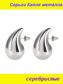 Сережки Капля металла серебристые