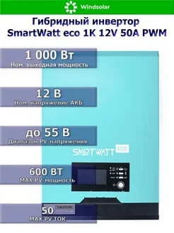 Гибридный солнечный инвертор 1000 Вт 12 В