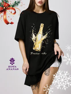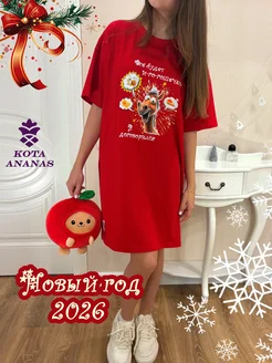Туника платье футболка новогодняя оверсайз с принтом