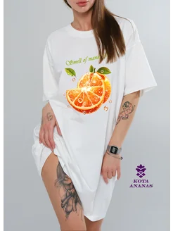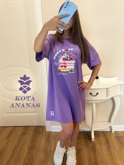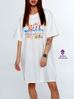 Туника женская домашняя платье футболка оверсайз с принтом