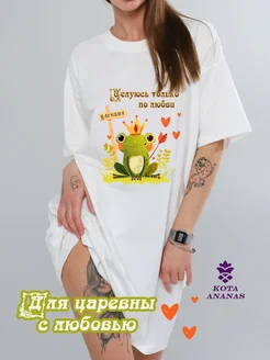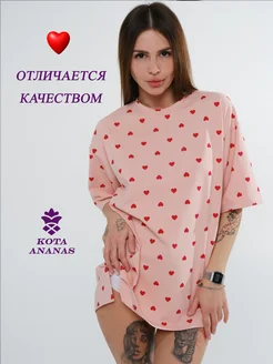 Туника домашняя футболка оверсайз удлиненная с сердечками